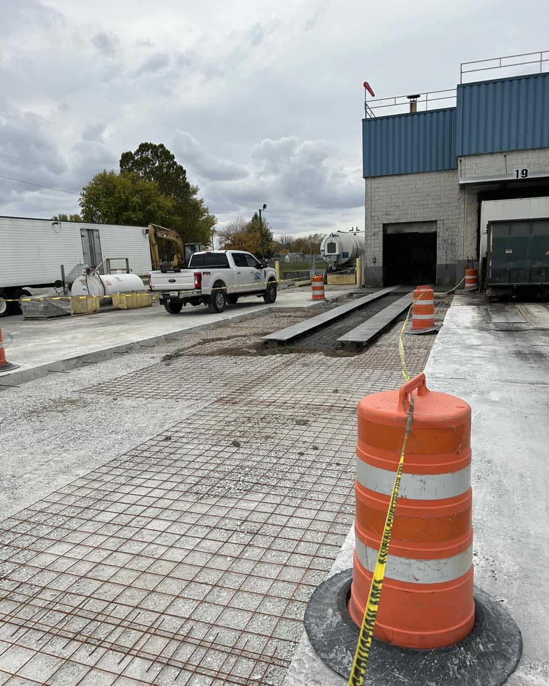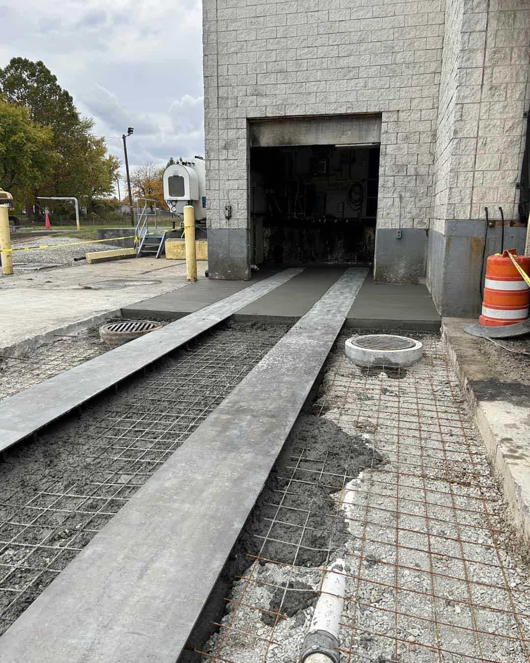 We recently replaced KB Foods Compactor Pads with new I-Beams poured into 8” thick concrete. Each I-Beam received a 1/2”x24” wear plate to support the heavy traffic of trash trucks and compactors rolling on them for years to come.